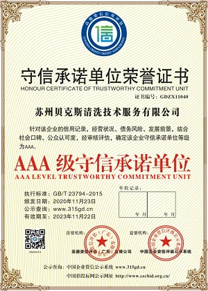 苏州贝克斯清洗技术服务有限公司成立于2015年12月28日,注册地位于苏州市姑苏区劳动路28号1903室,法定代表人为彭孝叶。经营范围包括销售:清洁剂、清洁设备、清洁用品;大理石打磨翻新,大理石晶面,大理石抛光,开荒保洁;外墙清洗;保洁服务;家政服务;内外墙涂料粉刷;物业管理;室内外装饰装修工程的设计及施工;日常保洁(依法须经批准的项目,经相关部门批准后方可开展经营活动)