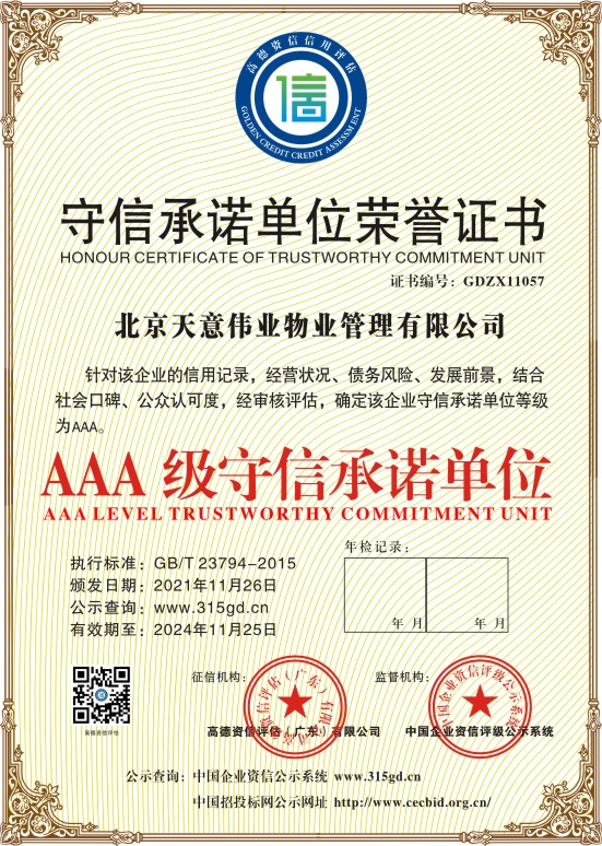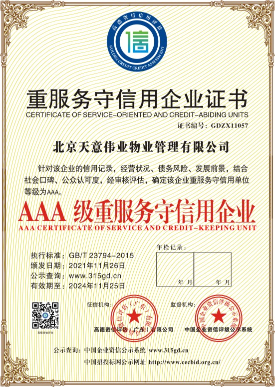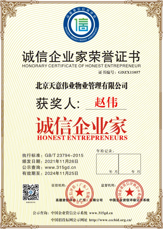 北京天意伟业物业管理有限公司成立于2011年01月04日,注册地位于北京市昌平区回龙观镇回龙观西大街35号院3号楼7层823A,法定代表人为赵伟。经营范围包括物业管理;机动车公共停车场服务;专业承包;城市园林绿化建筑物清洁服务;家庭劳务服务;酒店管理;餐饮管理;会议服务;经济贸易咨询;绿植租摆;技术开发、技术咨询、技术服务;销售花、草及观赏植物、植物幼苗、日用品。(依法须经批准的项目,经相关部门批准后依批准的内容开展经营活动。)北京天意伟业物业管理有限公司具有1处分支机构。