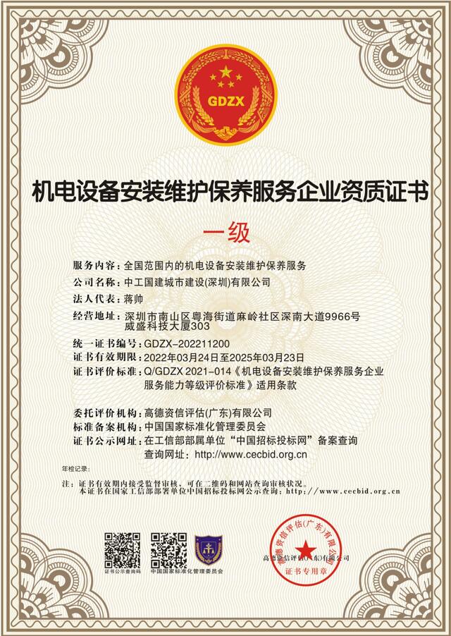 中工国建城市建设(深圳)有限公司成立于2006年06月19日,注册地位于深圳市南山区粤海街道麻岭社区深南大道9966号威盛科技大厦303,法定代表人为蒋帅。经营范围包括一般经营项目是:空调的上门安装、维护、保养(仅限上门服务);建筑机械设备的租赁、销售;电器机械及器材的销售及技术服务(不含限制项目);消防设施设备检测、评估;电力设施承装承修承试;安全技术防范系统的设计、安装、维护(仅限上门服务);泡沫灭火剂技术开发;园林绿化设计;园林绿化设备的销售及安装(仅限上门服务)。(以上项目法律、行政法规、国务院决定规定在登记前须经批准的项目除外,限制的项目须取得许可后方可经营),许可经营项目是:消防设施工程的安装、维护、保养、检测(仅限上门服务);房屋建筑工程、市政公用工程、公路工程、水利水电工程、电力工程、通信工程、地基基础工程、起重设备安装工程、防水防腐保温工程、桥梁工程、隧道工程、模板脚手架工程、古建筑工程、公路路面工程、公路路基工程、公路交通工程、环保工程、节能工程、钢结构工程、建筑幕墙工程、城市及道路照明工程、建筑装饰装修工程;消防设施工程、电子与智能化工程、石油化工工程的设计与施工;泡沫灭火剂生产、销售;消防器材生产、销售;电气设备、电源及报警控制设备的设计与制造;园林绿化工程施工,预拌混凝土、预拌砂浆的生产、销售、运输。(依法须经批准的项目,经相关部门批准后方可开展经营活动)中工国建城市建设(深圳)有限公司对外投资1家公司。